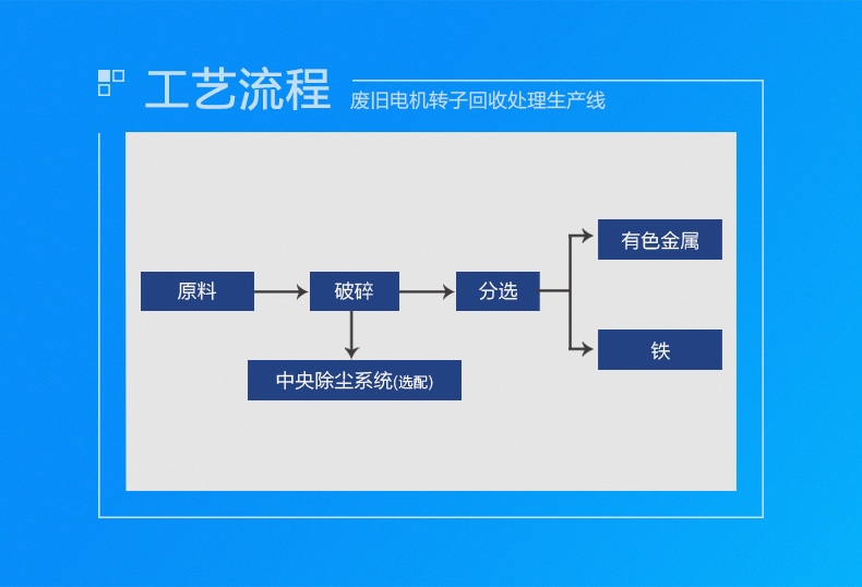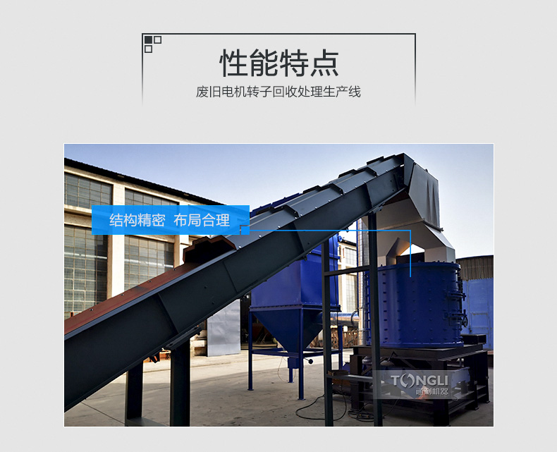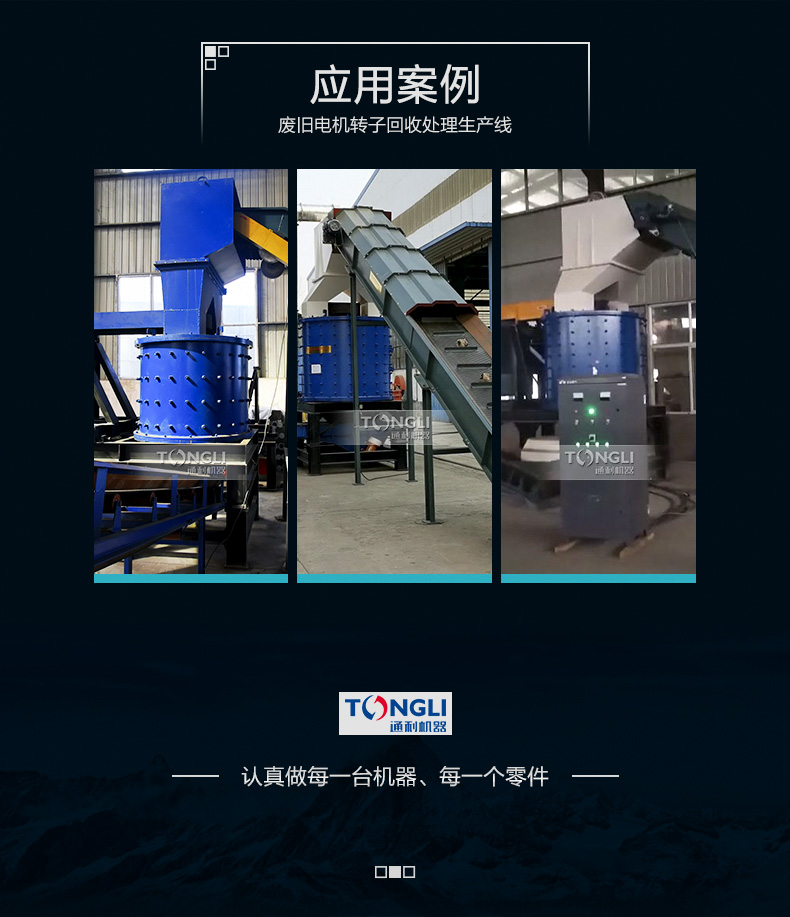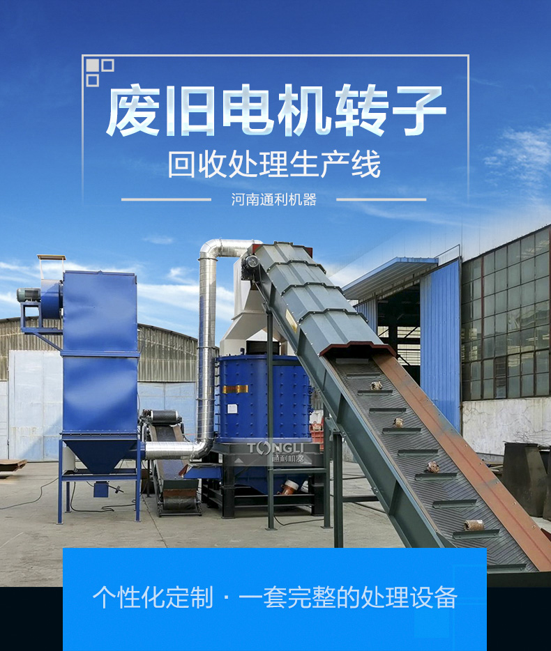 廢舊電機(馬達(dá))中很有較多的銅和鋁等材料,回收利用價值較,通利機器轉(zhuǎn)子破碎機設(shè)備破碎比,前期對廢舊電機轉(zhuǎn)子進(jìn)行破碎,后半程將破碎料里面的各類金屬分類回收,然后產(chǎn)品附加值,利潤可觀。
