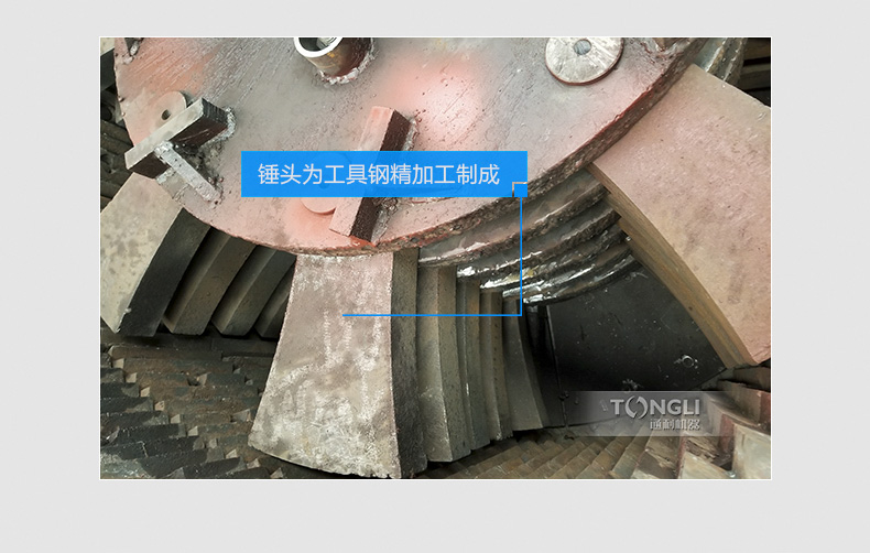 3. 破碎機錘頭為特殊工具鋼特殊工藝加工制成,破碎范圍廣,同時具有破裂、扯斷、擠壓等破碎功能,破碎粒度小。對不同規(guī)格的物料皆可輕松破碎。